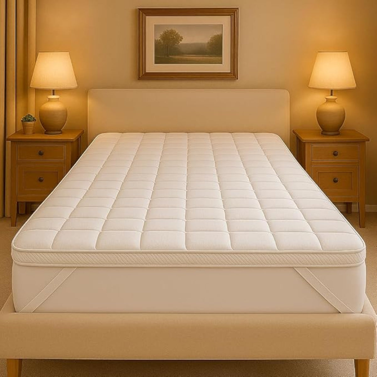 Experience unmatched comfort and support with our premium-quality mattress, designed with a plush quilted top and ergonomic firmness. Perfect for any modern bedroom, this mattress combines luxury and durability, ensuring a peaceful night’s sleep every time. Stylishly complemented by warm bedside lighting and natural wood tones, it elevates the elegance of your space.