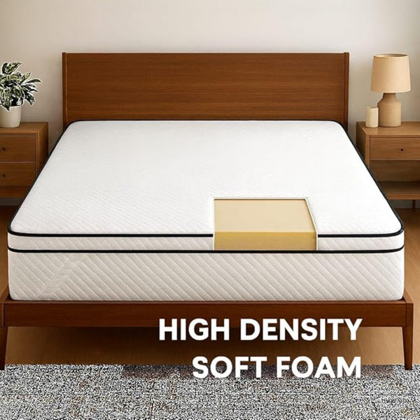 Zavora Homes Bonnell Spring Euro Top Mattress | (25cm Thickness) | Pressure Relief | Breathable Knitted Fabric | Motion Isolation | Long-Lasting Comfort (Single - 90 x 190 cm)